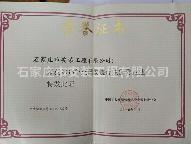 2015年全國(guó)安裝行業(yè)優(yōu)秀企業(yè)
